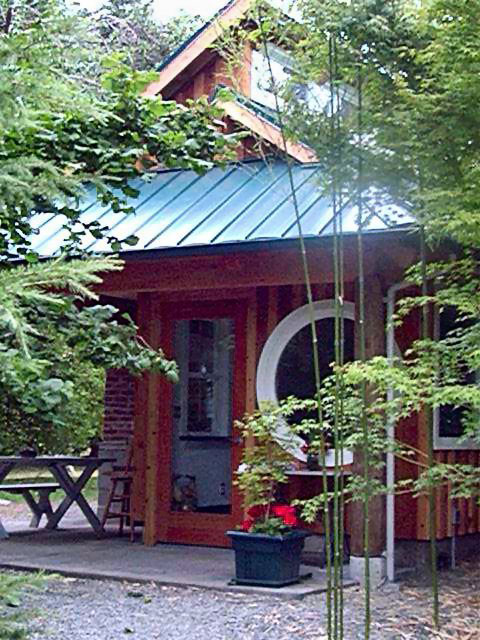 Providing shelter for the owner-built wood fired oven as well as a support space with cook-top, sink and cabinetry. Timber elements are employed in an eclectic style reminiscent of a not yet known tradition. This building has been the site of great good times belying its small scale.