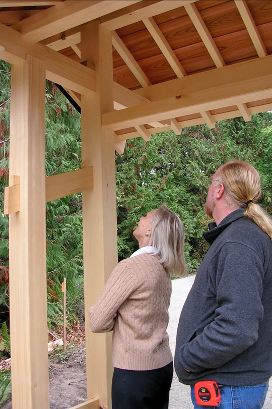 Of very traditional design, these gates were the subject of a week long Timber Framers Guild workshop.