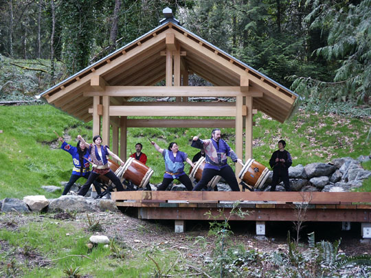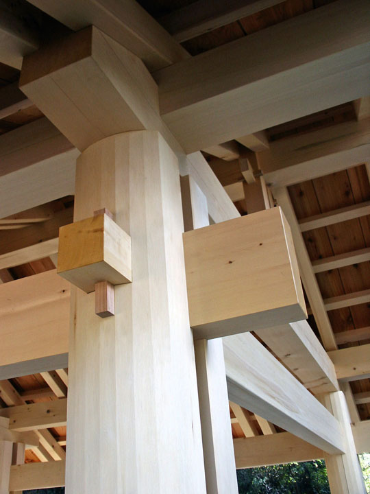 The pavilion reflects a blending of timber frame styles and traditions but has its own contemporary flair.
