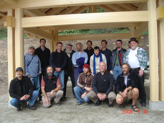 The gentleman on the farthest left is Makato Imai who taught several of the lead carpenters years previously and many miles away. Makato had not worked directly on the building but showed up on site unexpectedly on the last day.
